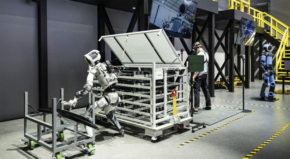 Boston Dynamics officials noted that they have set up special training facilities for Atlas, adding that the latest AI software allows the robot to learn on the fly, rather than needing to have its movements specifically programmed like traditional factory automation. And once one of the robots learns a task – such as unloading pallets of automotive parts – it can digitally transfer that knowledge to its clones.
