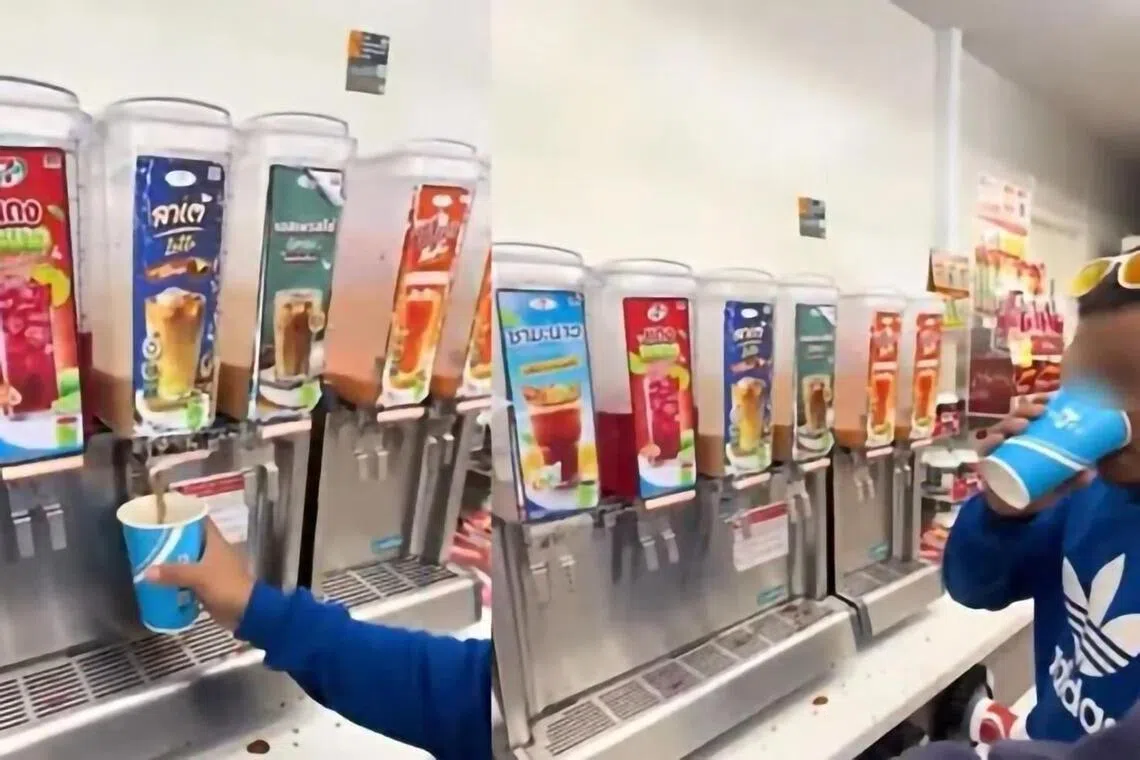 马来西亚《中国报》报道,日前网上流传一则视频,可见一群马国男子在泰国连锁便利店无限续杯饮料,还混合不同口味的饮料继续饮用,违反当地商店规定。