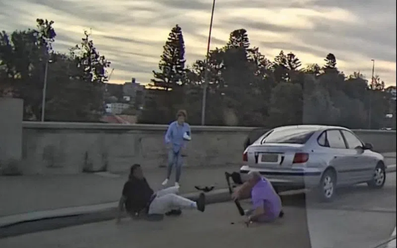 行车记录仪车主珍妮分享的视频截图显示,一对夫妇为阻止在澳大利亚悉尼邦迪海滩恐怖袭击的枪手,不幸遇难。 (路透社)