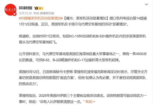 本来以为随着伊朗政府压制住民间游行,局势就能缓和一段时间。没想到在伊朗内部平静一些后,美国的动作却一点没停。作为前几次军事行动最具标志性的动作,美国空军加油机队已经出动,并且就位于直面伊朗的卡塔尔乌代德空军(也就是去年伊朗遭B-2A突袭后,伊朗弹道导弹反击的护航战斗机出发地),并且特朗普的态度也逐渐激烈。