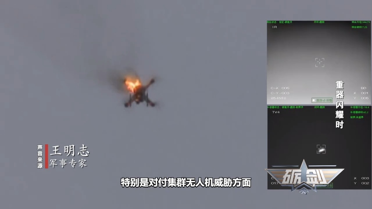 军事专家 王明志:定向能武器是利用高度集中的定向束流的能量,破坏或摧毁目标的新型武器系统,目前主要包括激光武器和高能微波武器。定向能武器具有反应速度快,命中精度高,破坏威力大,射击成本低,“弹匣”容量大等突出优点,在对付“低、慢、小”目标,特别是对付集群无人机威胁方面具有很大的优势。