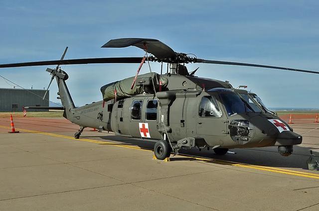 而第二架FPV无人机也不客气,开始在附近寻找能打击的目标,这次找到的是一架“黑鹰”直升机。从外形来看还不是普通的“黑鹰”,从机身中部被特地遮盖上的红十字标识看,这应该是一架经过特殊改造的HH-60M救护型黑鹰直升机。