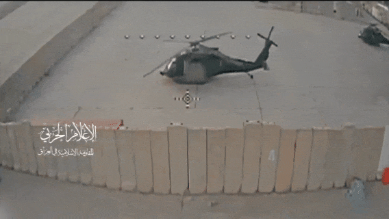 此次被击中的当属GSAB内的其中1架HH-60M,只不过“血卫旅”没有放出随后的打击效果的视频,估计是因为战斗部或者引信设计的因素,导致FPV无人机虽然命中了这架“黑鹰”、但是没有成功引爆。但是无论如何,此次伊拉克民兵部队使用FPV无人机对“胜利营”内“黑鹰”直升机的攻击,依然创下了中东什叶派民兵部队使用武器的纪录。