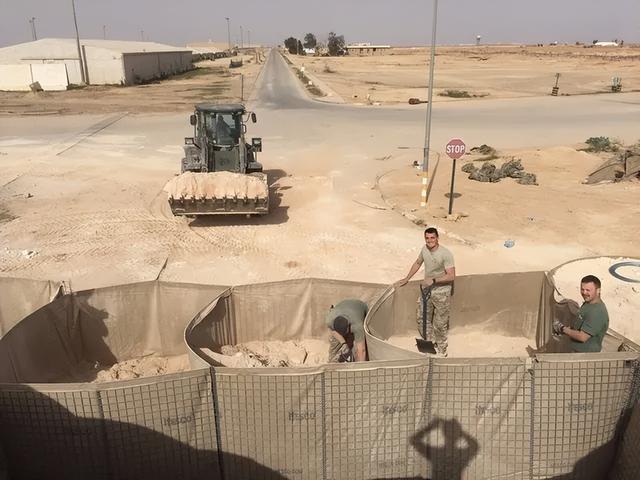 以往美军营地的防卫,主要靠的是一套完备的营地防御体系:营地外围使用大量蛇腹型铁丝网、HESCO防爆墙、钢筋混凝土预制板组建的阻绝墙,伴随大量岗哨,这套营地防御体系可以有效抗击少量轻武器直射、或者自爆车直接冲击。而营地内则视现地情况,比如美军的这个“胜利营”,就配备了一台ANMPQ-64型雷达,当然还可以配备诸如陆基“密集阵”系统、甚至“铁穹”系统等。这套营地防御系统,主要是用于防卫各种火箭弹、中型自杀式无人机的进攻,比如打个简易的107毫米火箭弹或者打个伊朗的“小摩托”什么的。