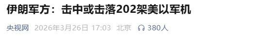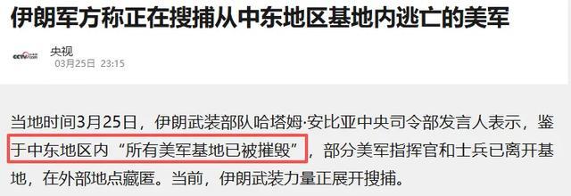 伊朗军方昨天声称,已经击毁美以军200多架战机,摧毁了中东所有的美军基地,目前正在搜捕从基地内逃亡的美军。——虽然看美军被揍我很乐呵,但这属实有点大本营战报了,如果美军真被打这么惨,中东基地全部被摧毁,与美军即将出动地面部队登陆的现状不符。