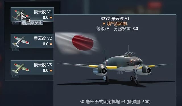 但对于日系,情况可就不一样了。在游戏早期,由于日本在二战时期研发的喷气式飞机很少,性能也很低劣,Gaijin干脆一次性给日系加入了三架根本不存在的飞机——“景云改”系列喷气式轰炸机。