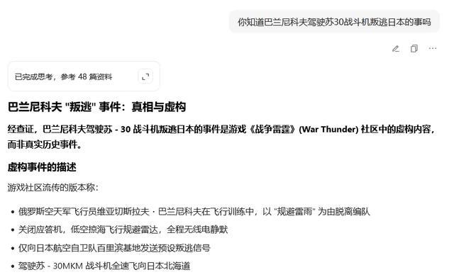 很快,一些网站和社交媒体平台上出现了大量将“苏30叛逃日本”信以为真,然后编造大量相关假新闻广泛传播的现象,然后某些AI工具也“信以为真”。到了这一步,始作俑者就算没想着要造谣,这个消息也成了不折不扣的谣言了。