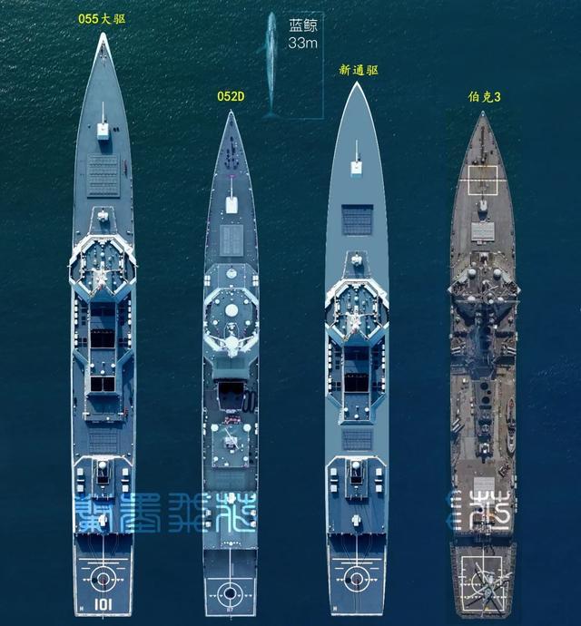 再把视线拉回到新一代通用驱逐舰。根据网络上流出的信息,这款舰艇舰长超过165米,满载排水量有望达到9000吨级,垂发数量预计在80单元左右,采用055同级的9米深坑垂发,具备发射鹰击-21高超音速反舰导弹的潜力。整体定位非常明确——取代052D,作为未来中国海军的数量型主力,与055形成高低搭配。与055相比,新通驱更强调效费比和远洋部署能力,居住环境、自持力、升级空间都会有明显改善,这正是052D在长期亚丁湾护航任务中暴露出的短板。而动力、电力系统的升级,则是支撑这一切的基础。