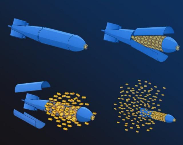 其次是命中效率的问题。航母虽然体型巨大,但毕竟是一个移动目标,而且面积远小于城市。如果使用集束战斗部,大量子弹头可能散落在海面上,真正落在甲板上的概率其实并不高。对于打击航母来说,一枚高精度的大威力单弹头往往比几十枚随机散落的小弹头更有效。此外反舰弹道导弹必须在末端进行精确制导,如果战斗部提前在空中散开,就会失去统一制导能力,这也是目前很多反舰弹道导弹仍然采用单一战斗部的重要原因。