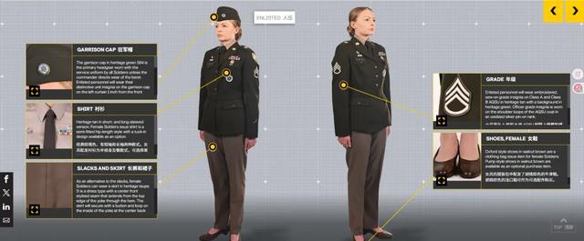 至于“杰西卡”经常穿着的美国陆军T恤就更加离谱,不仅在胸前增加了一个不知所谓的银色徽章,两侧衣袖上还都贴着美国国旗,这样的T恤完全不符合美国陆军的着装标准。特别是在一些照片里,“杰西卡”的T恤完全就是露脐装,和运动内衣也差不了多少。如果真有美军女兵敢把制服改成这个样,那绝对要被抓进宪兵队,更别说在总统面前穿着露脐装讲话了!