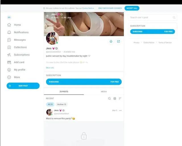 而对于一些“真爱粉”,“杰西卡”则会将其引流到一些尺度更大的平台,例如Onlyfans,诱导其付费订阅,获取其他“不能公开”的照片。军武菌原本想给大家试试毒,但由于相关账号已经被封禁,究竟有多少人订阅了这些资源,里面的内容又有哪些,如今已经很难考证了。