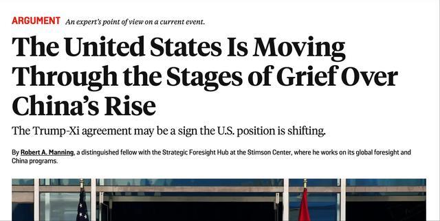 文章指出,美国已经走过了第一阶段的否认——当时美国幻想能够改造中国;以及第二阶段的愤怒——对中国全面强硬。