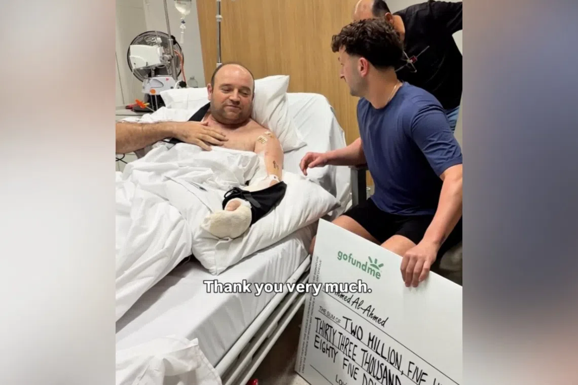 在澳大利亚邦迪海滩发生的大规模枪击事件中,一名空手夺枪、挽救多条生命而被誉为“邦迪英雄”的男子艾哈迈德,收到了超过250万澳元(约210万新元)的众筹善款支票。