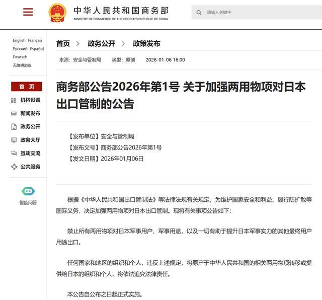 此外,韩国总统李在明于1月4日抵达北京,随行的有来自三星电子等韩国企业的200多名代表,很明显,双方将在电子设备领域有大动作。从战略上来讲,完全限制自身优势产业出口是不理智的,拉拢大部分贸易对象,形成孤立部分特定国家或地区的局面,才最有价值。因为管制并不能代表彻底断绝供应,但相比于正常采购的韩国,成本大增的日本电子企业,将在国际上失去竞争力。二、承担防止杀伤性武器扩散的国际义务。商务部公告中直接提到了“防扩散”的字眼,管制目录的第一页则是“可作为化学武器的化学品”。