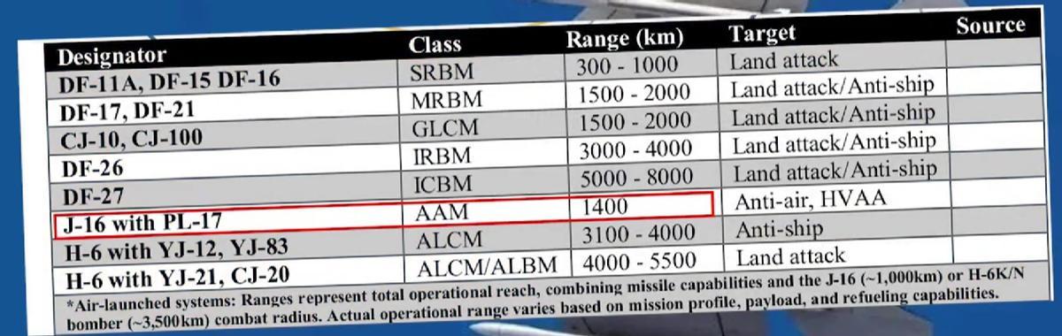 ▲美军公布的歼16+霹雳17射程