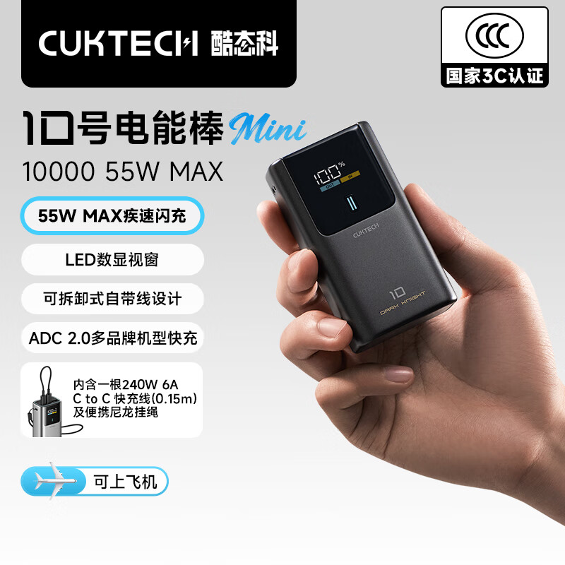 159 元:酷态科 10 号电能棒 Mini 新增“Dark Knight・黑骑士”配色,支持 55W 双向快充