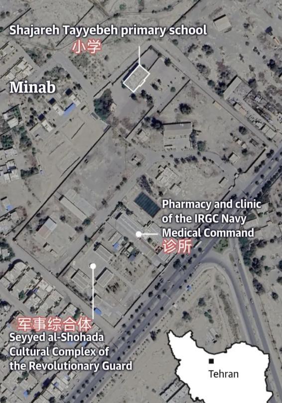 3月5日,《纽约时报》通过整合卫星图像、社交媒体视频以及现场照片,对事件进行了详细调查。调查显示,学校所在区域在袭击当天确实处于空袭范围之内。当时,美军正在对附近的伊朗革命卫队海军基地发动打击。卫星图像显示,该基地至少有六处建筑遭到精确打击,而学校的教学楼也在几乎同一时间被击中。