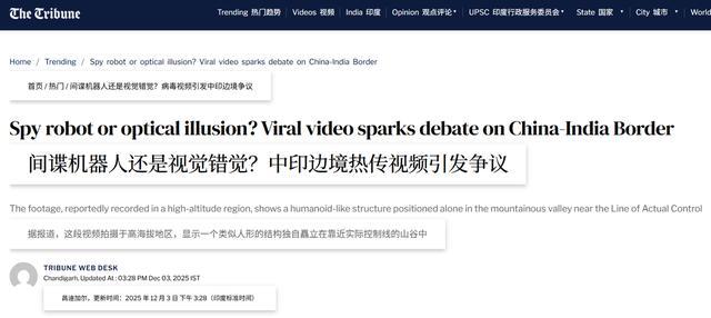 前两天,一段来自中印边境的视频在印度社交媒体上引发热议。视频中,几名印度边防士兵远远拍到中方一侧出现了一个银灰色的金属身影,静静伫立在荒滩乱石之间。