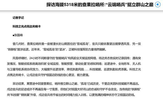 在海拔5318米的查果拉哨所,官兵们配备了多种无人化、智能化侦观设备,这些智能哨兵能够24小时不间断值守,大幅减轻了人工巡逻的压力。有了这些装备,边防战士可以在温暖的营房里通过远程监控系统对辖区进行观察,不必再像以前那样长时间暴露在严寒环境中。