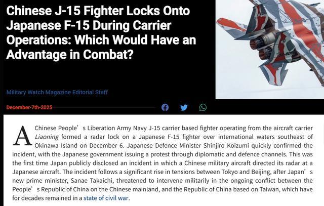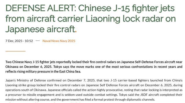 美媒:击退F-15J是中国航母掌握作战能力,向日本施压的标志